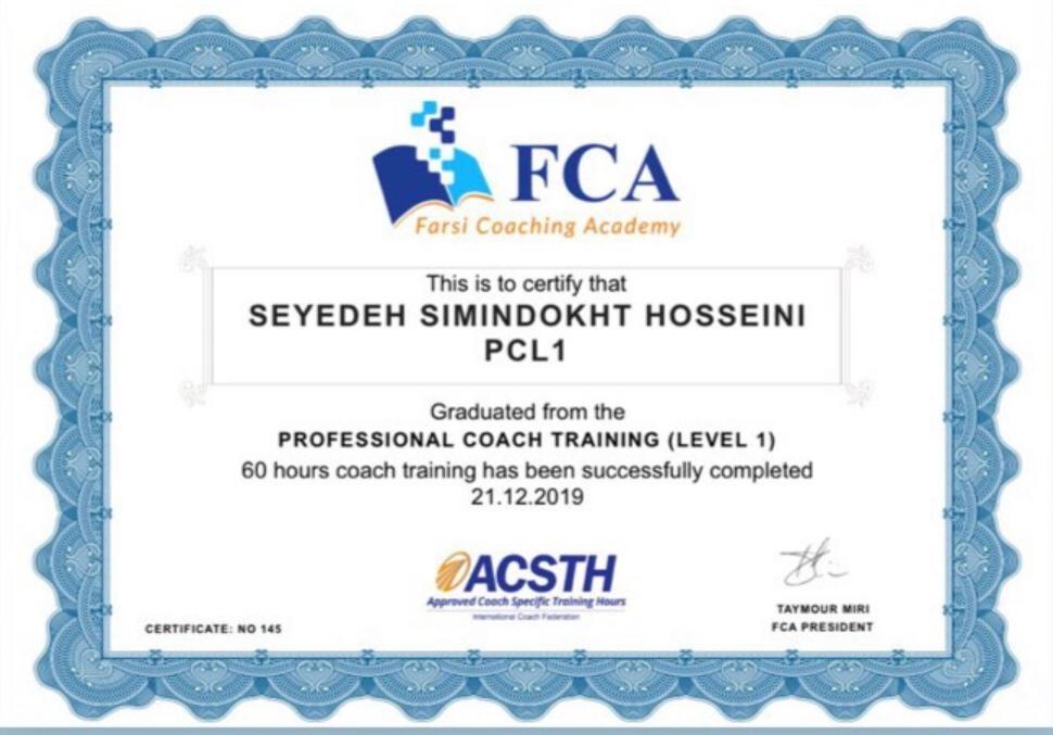 گواهی پایان دوره شصت ساعته تربیت کوچ از آکادمی FCA انگلستان