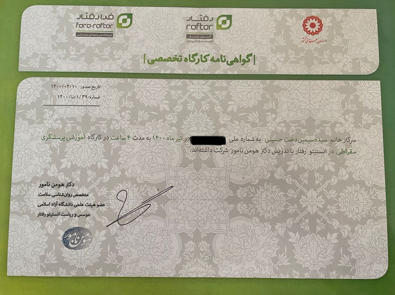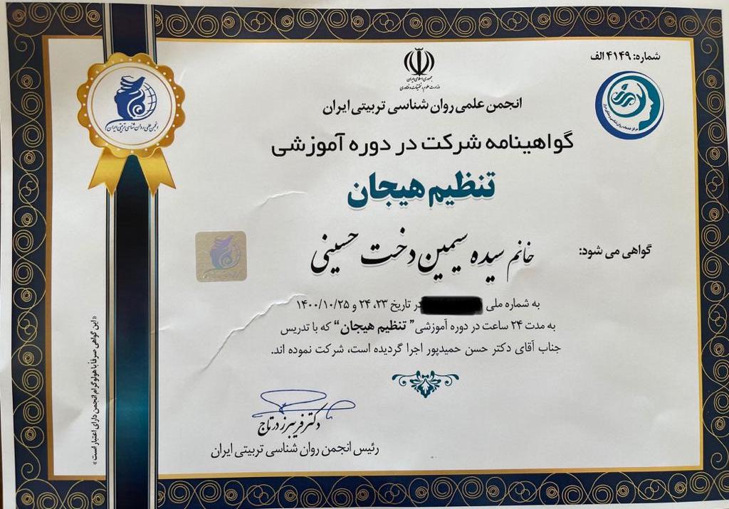 کارگاه «تنظیم هیجان» با تدریس دکتر حسن حمیدپور به مدت ۲۴ ساعت سال ۱۴۰۰