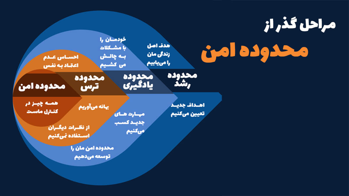 ما زمانیکه در تلاش برای حفظ آسایش و آرامش موجود از هر نوع استرس و اضطرابی اجتناب می کنیم، خودمان را در دایره امن فعلی خودمان محبوس می داریم؛ باید توجه کنیم که در قدم اول و در شروع تجربه جدید بیشتر از هر زمان دیگری با میزانی از استرس، ترس و اضطراب مواجه می شویم. البته این تجربه ترس یک فاز گذار است و قرار نیست ابدی باشد؛ در واقع شهامت لازم برای تجربه های جدید یا هر نوع تغییری، شهامت رو به رو شدن با این استرس و اضطراب و ترس است. فقدان این شهامت ما را از امکان رشد محروم می کند؛ شاید دایره امن فعلیمان برای تأمین نیازهای فعلیمان کافی و مناسب باشد، اما به زودی زمانی می رسد که این دایره امن با شعاع فعلی دیگر جوابگوی نیازهایمان نباشد.